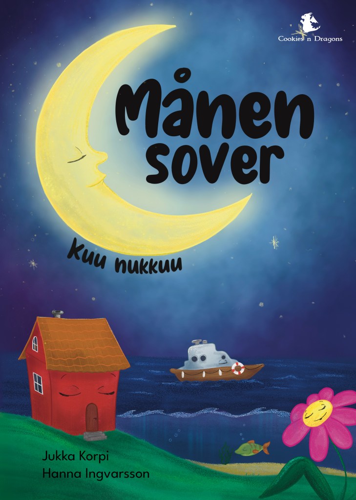 This is my debut book, published by Cookies n Dragons in spring 2024, a bilingual children book with illustrations, containing 20 bedtime stories, both in Swedish and Finnish. This has been a real long term project for me I started to work with for about 15 years ago. I had just become a father, and my children had to sleep, so I started to make some own bedtime stories, because I didn’t find any in the stores which was suitable for my goals. I wanted the kids to sleep, but also to learn better Finnish.